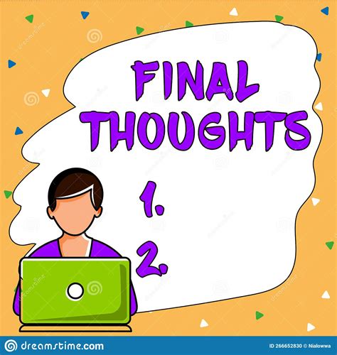 May 7, 2023 · final thoughts. In conclusion, a strong conclusion is crucial in leaving a lasting impression on the reader. It should summarize the main points of the article, provide a call to action, make a memorable statement, and consider the overall tone. After the “what” and the “so what,” you should leave your reader with some final thoughts. If you have written a strong introduction, your readers will know why you have been arguing what you have been arguing—and why they should care.